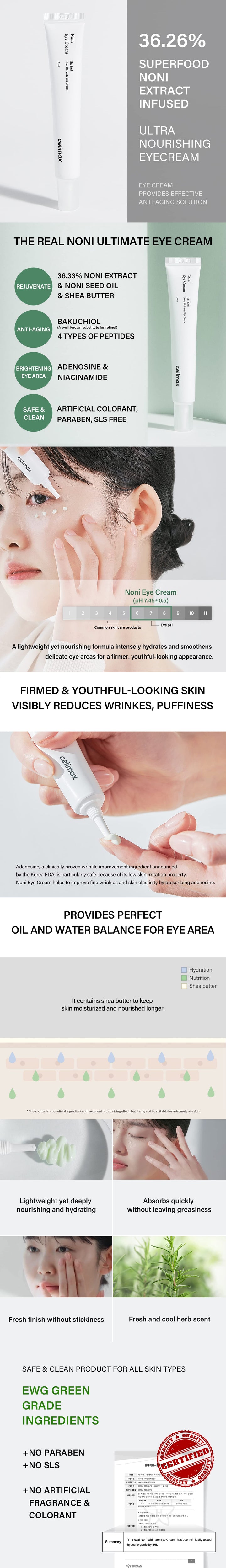 36 % d’extrait de Noni : régénère, protège et revitalise la peau du contour des yeux.